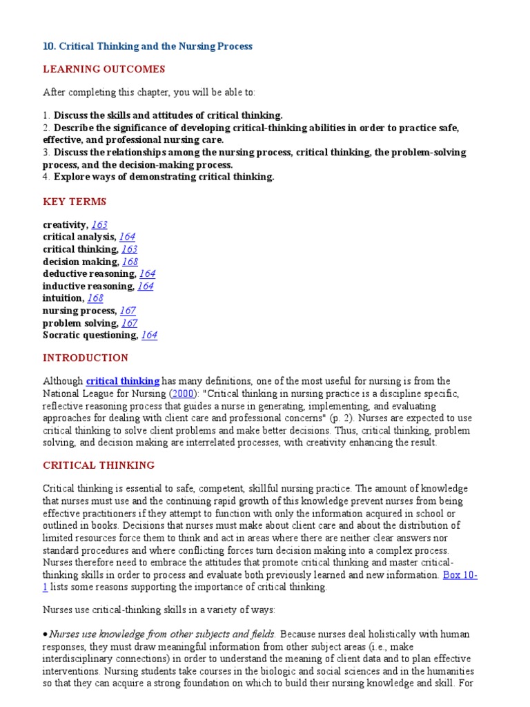 10 Critical Thinking And The Nursing Process Learning Outcomes After Critical Thinking Scientific Method Tailor Your Resume For Each Job