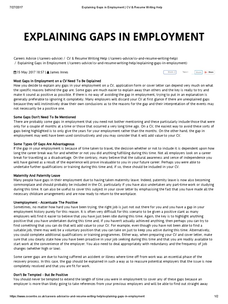 Explaining Gaps In Employment Cv Resume Writing Help Resume Parental Leave Sample Resume Cover Letters For Executives