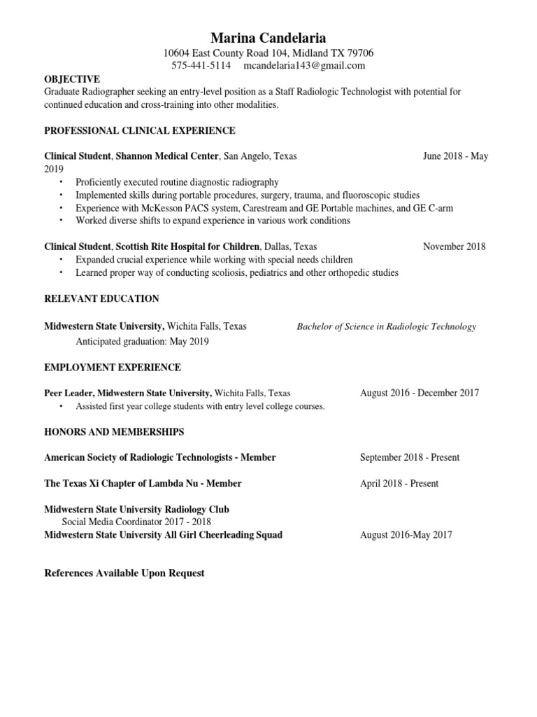 Radiologic Technologist Resume X Ray Tech Resume Example Stay At Home Mom Jobs 2020